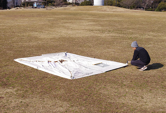 この全開になるジッパーによって、片側を天幕として持ち上げタープのように暖をとるこもできます。