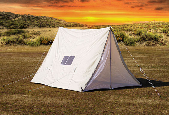 The easiest tent to put up. Stake the corners and raise the peak with a pole or rope over a limb.