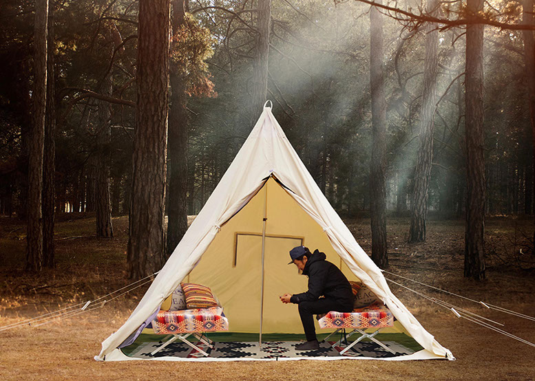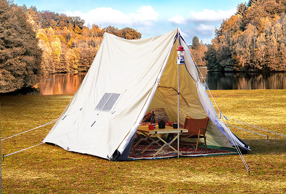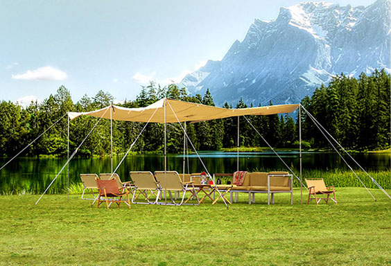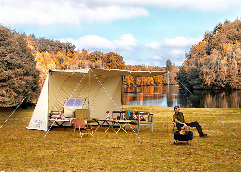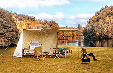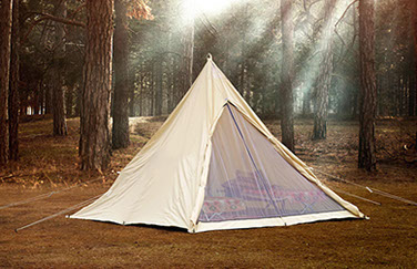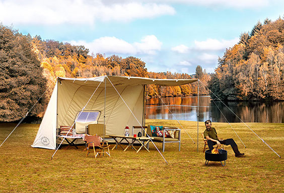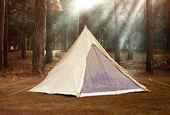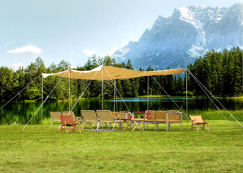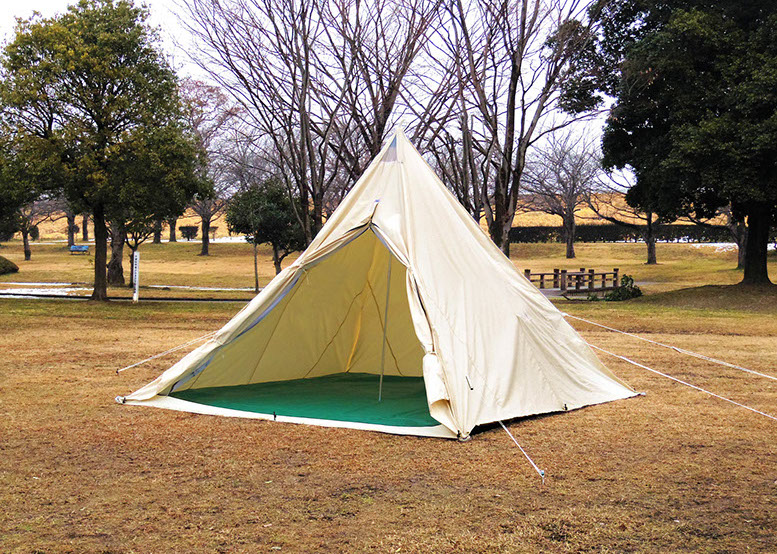 豪雨や積雪の問題にも対応できる優れたタープ型テントです。 ポールや木を利用して簡単に組み立てることが出来ます。