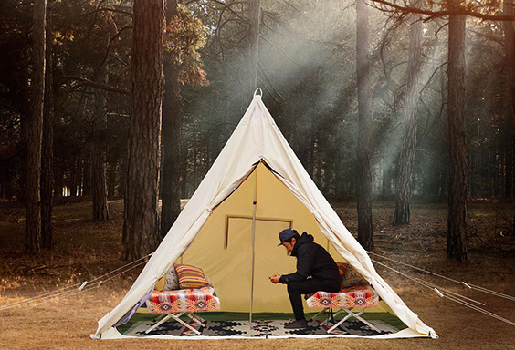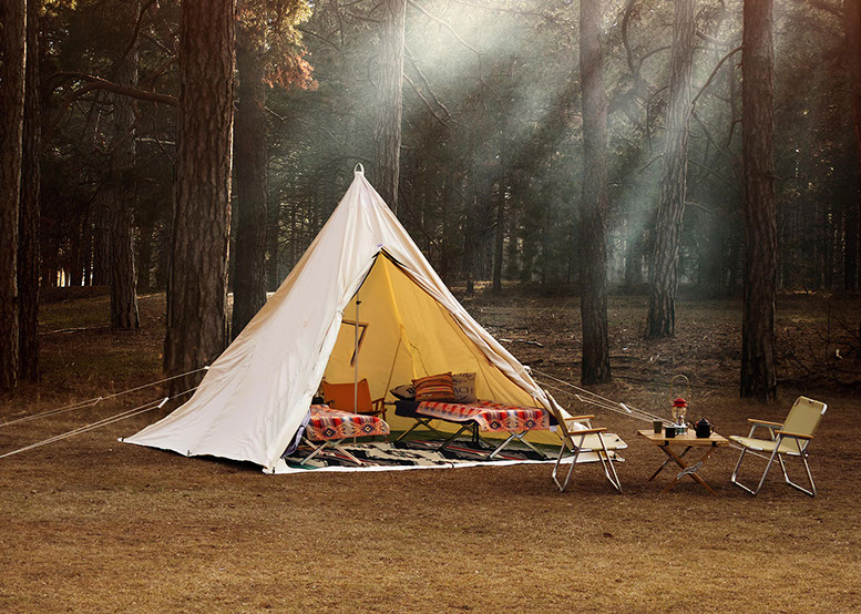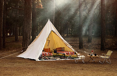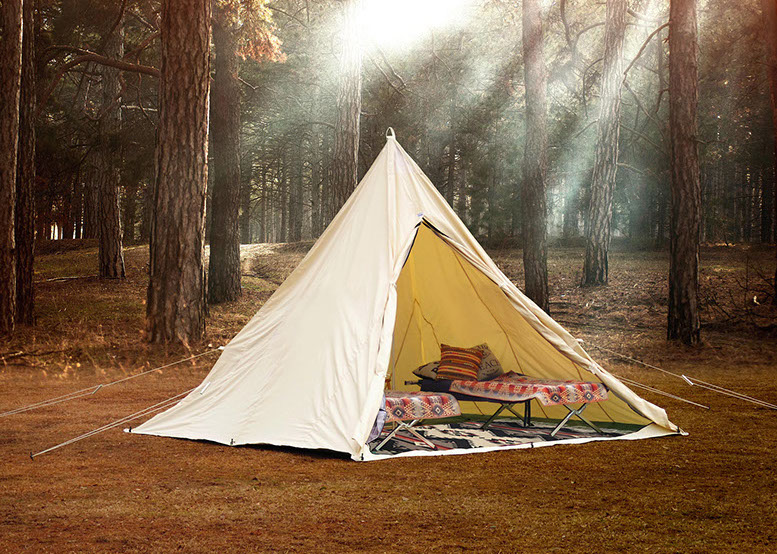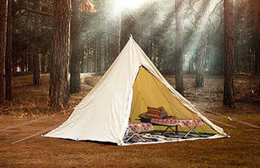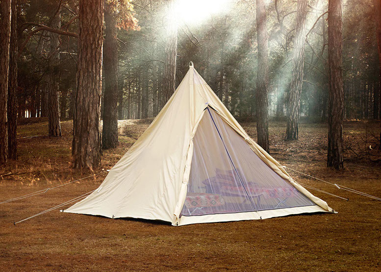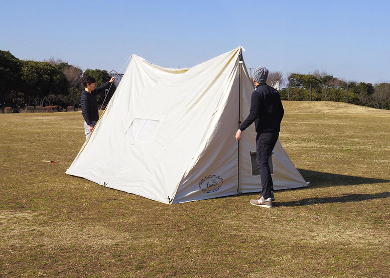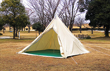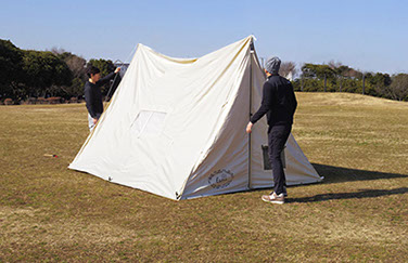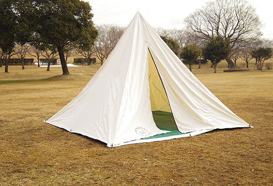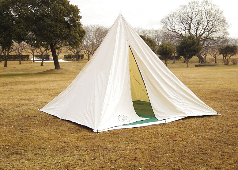 豪雨や積雪の問題にも対応できる優れたタープ型テントです。 ポールや木を利用して簡単に組み立てることが出来ます。