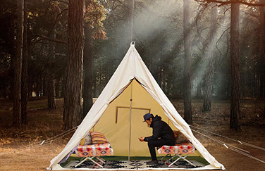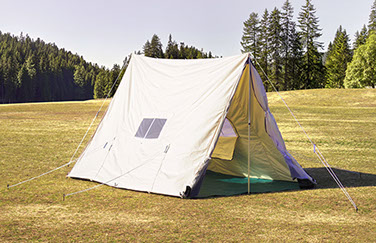 The easiest tent to put up. Stake the corners and raise the peak with a pole or rope over a limb.