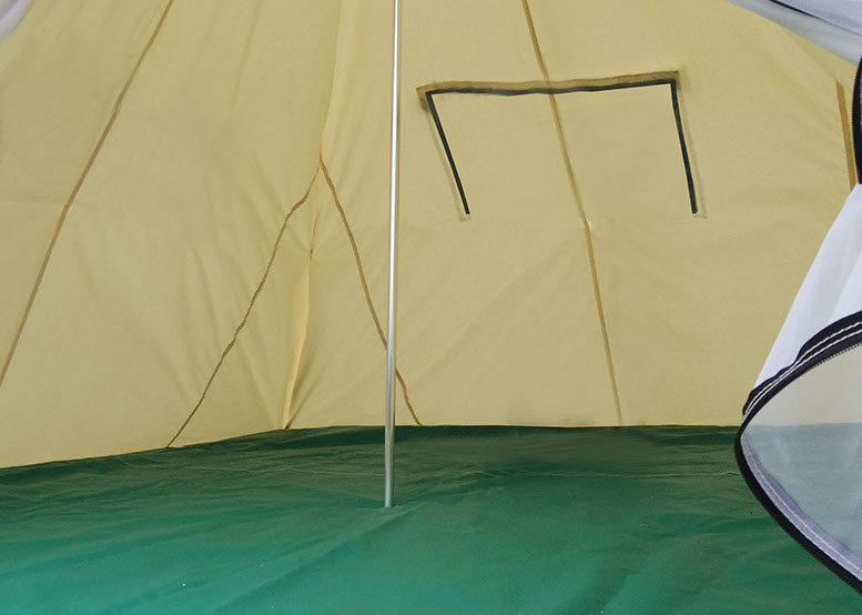 sheer poles or what have you. This tent features a heavy duty nylon zipper clear to the peak on each end which zips down
